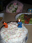 そんなわけで、今日は花束とケーキを用意して、ささやかながら家族でパーティ。もう妻も息子も週末からうきうき、ついさっきパーティが終わるまで落ち着かず。
